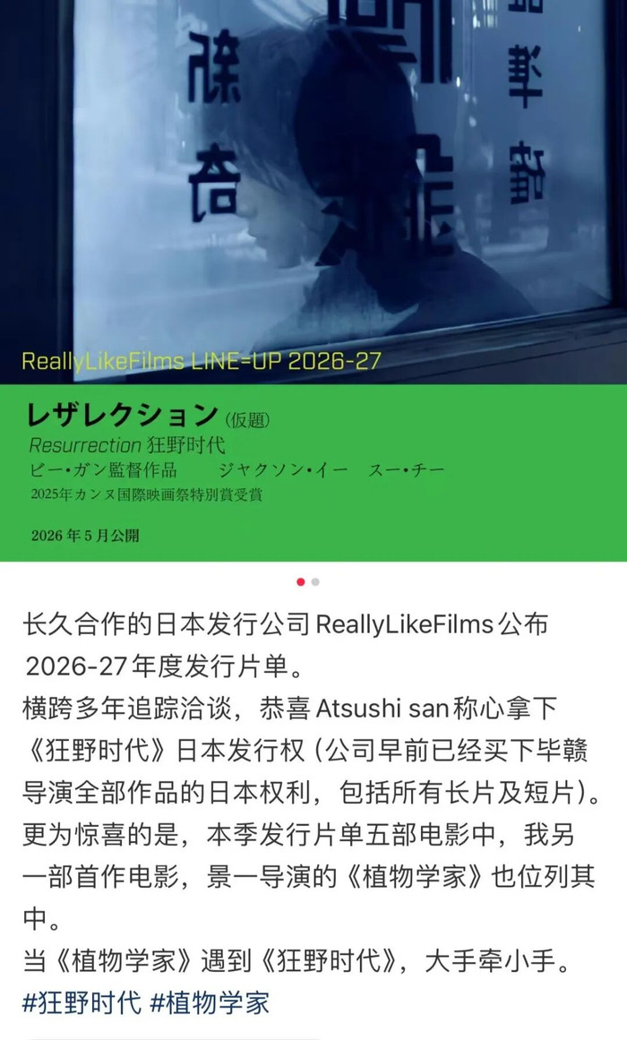 在双重挤压下,过去的经验依然可以得到最大程度的借鉴与沿用。自《路边野餐》时期即建立的与全球艺术电影发行商的合作模式与信任度,在这十年间被持续作用于毕赣的新片和嫁接给更多创作者的新人新作——规则建立后,单佐龙个人的制片人工作与艺术片「出海」方法论,也走到了「3.0」阶段。